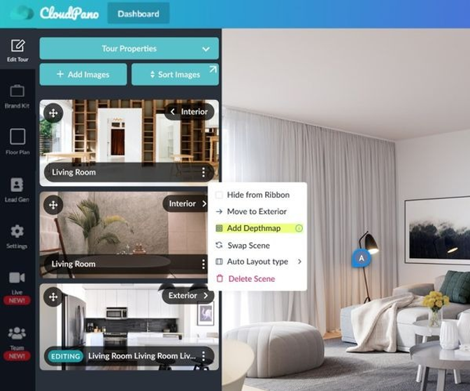 You can add Depthmaps one-by-one to any previously uploaded scene at any time. To associate Depthmaps automatically to a scene during uploading, match the filenames of your scene image and depth map, and then simply add “_depth” to your Depthmap file name.